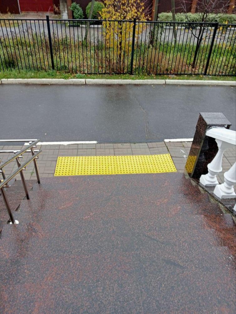 Я хожу в поликлинику по месту жительства и на днях обнаружил тактильную плитку на входе. Яркая, желтая, мимо входа теперь не пройдешь.