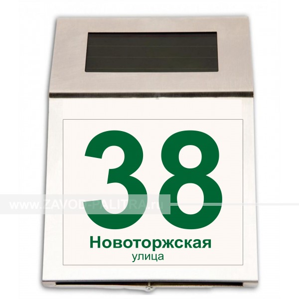 Если на Вашем доме нет таблички с номером или она маленькая и незаметная, указатель номера дома с подсветкой на солнечной батарее от завода «Палитра» – это лучшее решение этой проблемы! Гостям не придется искать Ваш дом – такой указатель прекрасно видно даже в темноте, благодаря крупным цифрам и яркой подсветке. А благодаря дизайну указатель эргономично впишется в архитектурный стиль фасада Вашего дома или здания. Вам не придется тратиться на батарейки или приглашать электрика для подключения указателя к сети.